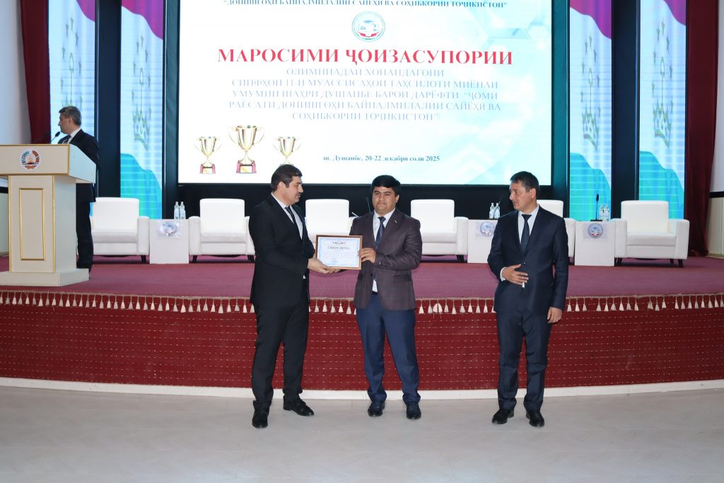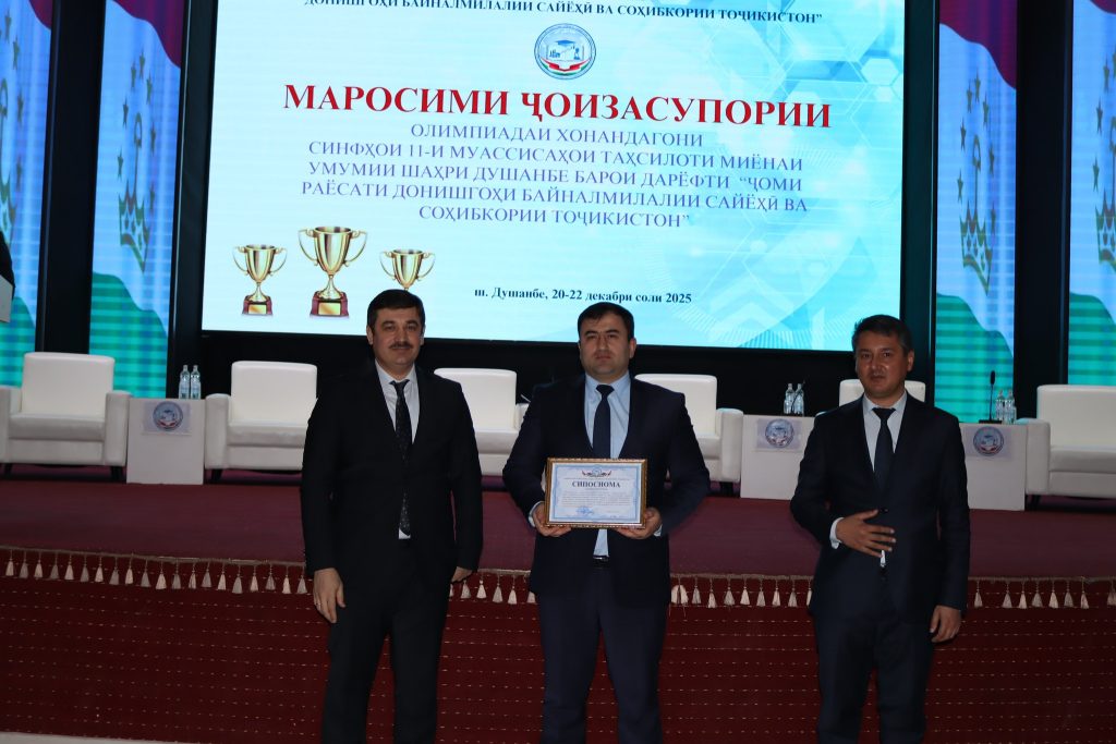 22 декабри соли 2025 дар Донишгоҳи байналмилалии сайёҳӣ ва соҳибкории Тоҷикистон маросими ҷоизасупории ғолибони даври ниҳоии озмун (олимпиада)-и хонандагони синфҳои 11-и шаҳри Душанбе аз рӯйи фанҳои математика, физика, химия, биология, технологияҳои иттилоотӣ ва георгафия баргузор гардид.