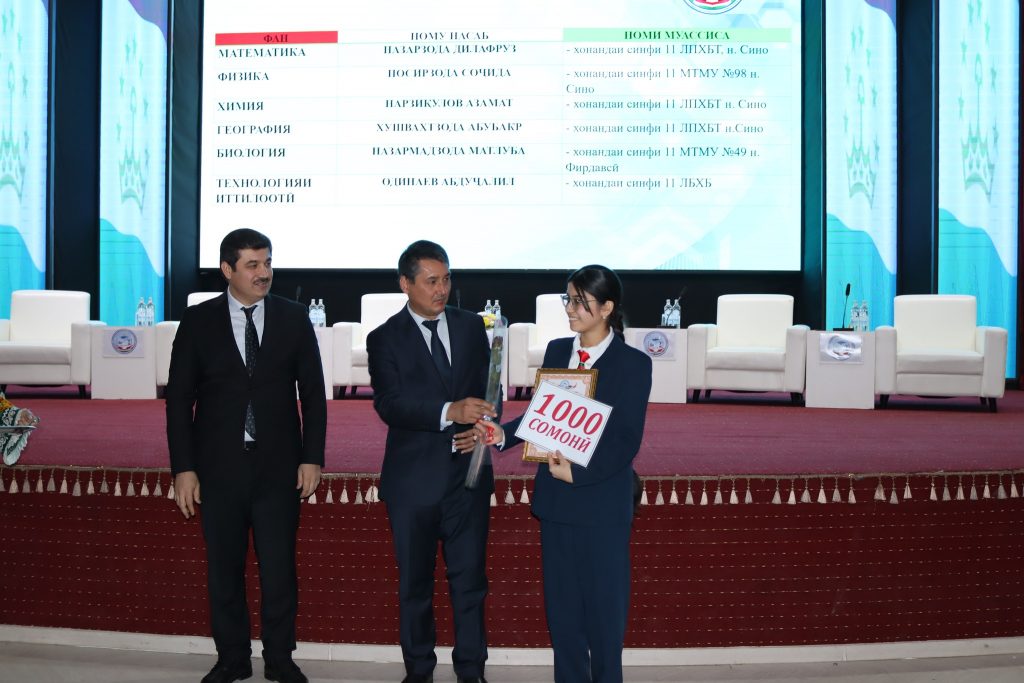 Баргузории ин озмун дар доираи татбиқи амалии дастуру супоришҳои Асосгузори сулҳу ваҳдати миллӣ – Пешвои миллат, Президенти Ҷумҳурии Тоҷикистон муҳтарам Эмомалӣ Раҳмон ҷиҳати иҷрои Нақшаи чорабиниҳои “Бистсолаи омӯзиш ва рушди фанҳои табиатшиносӣ, дақиқ ва риёзӣ дар соҳаи илму маориф” сурат гирифт. Натиҷаҳои имрӯза гувоҳи равшани он мебошанд, ки сиёсати маорифпарваронаи Пешвои миллат дар амал татбиқ гардида, ба самараҳои воқеӣ ноил мегардад.
